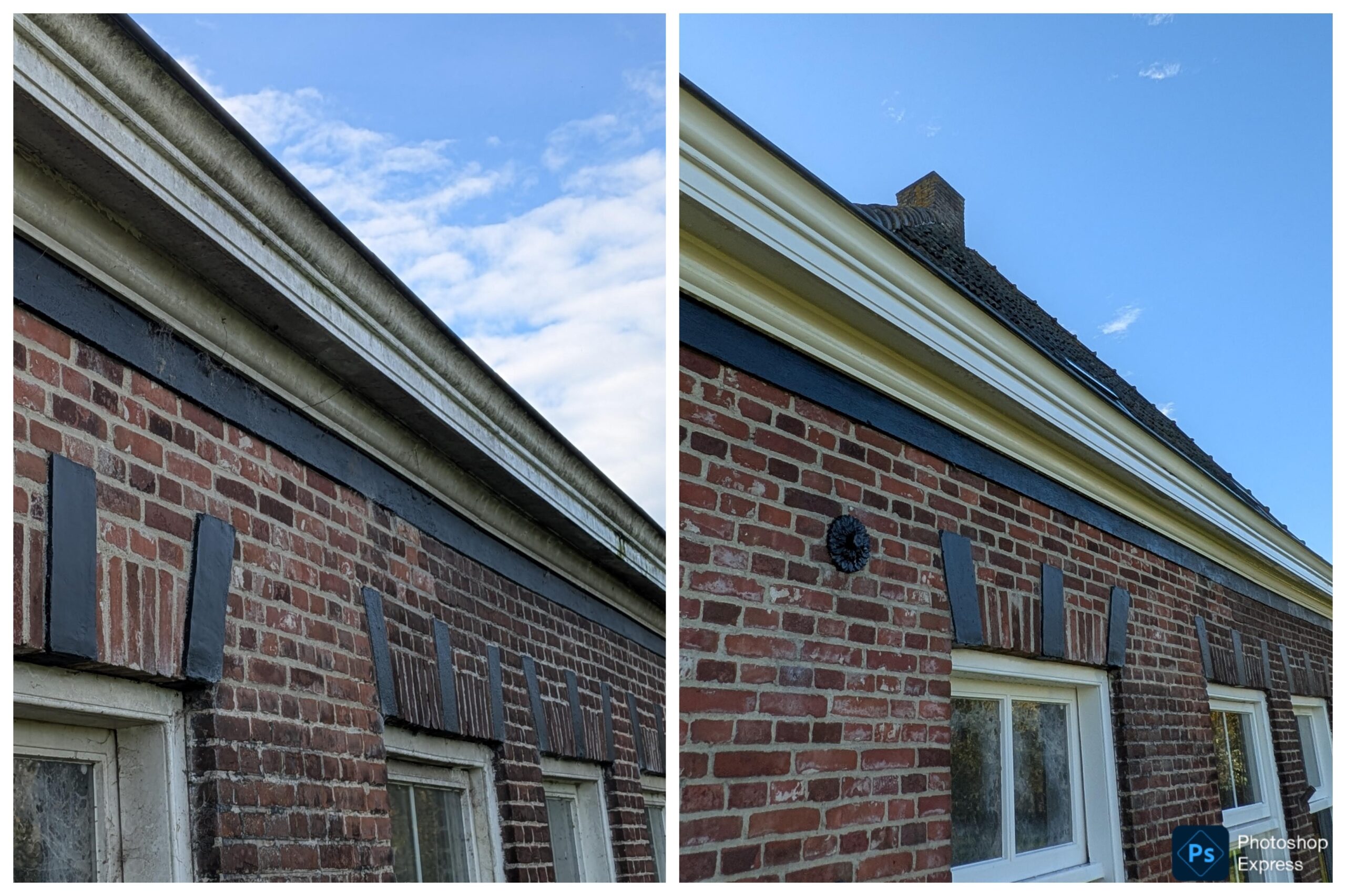 Bij deze karakteristieke boerderij, gelegen midden in de landelijke omgeving, kregen wij de mooie opdracht om de complete voorgevel te reinigen. Door jarenlange blootstelling aan verschillende weersinvloeden waren de kozijnen, ramen en dakgoot sterk vervuild.